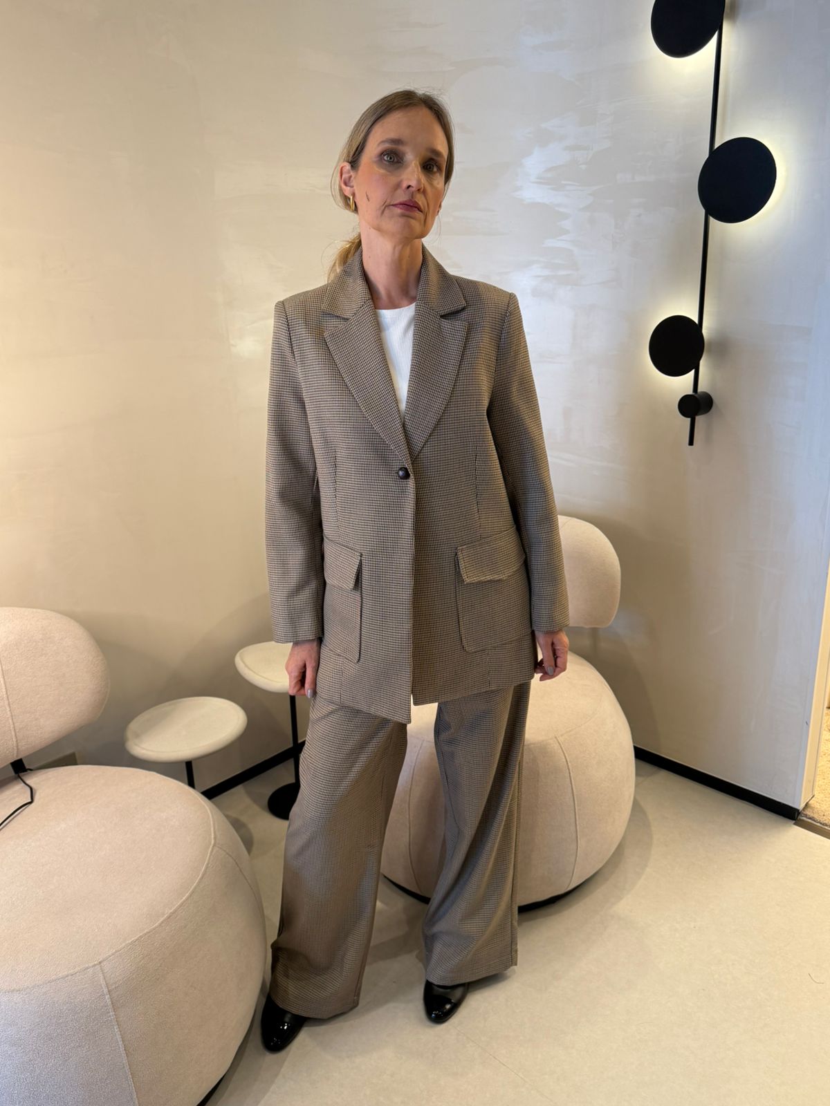 Blazer Com Bolsos Pied De Poule