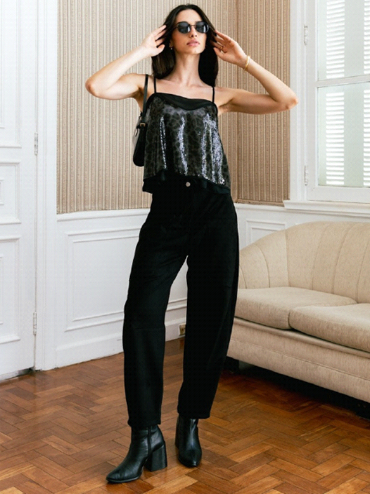 Calça Balloon Suede Com Bolsos