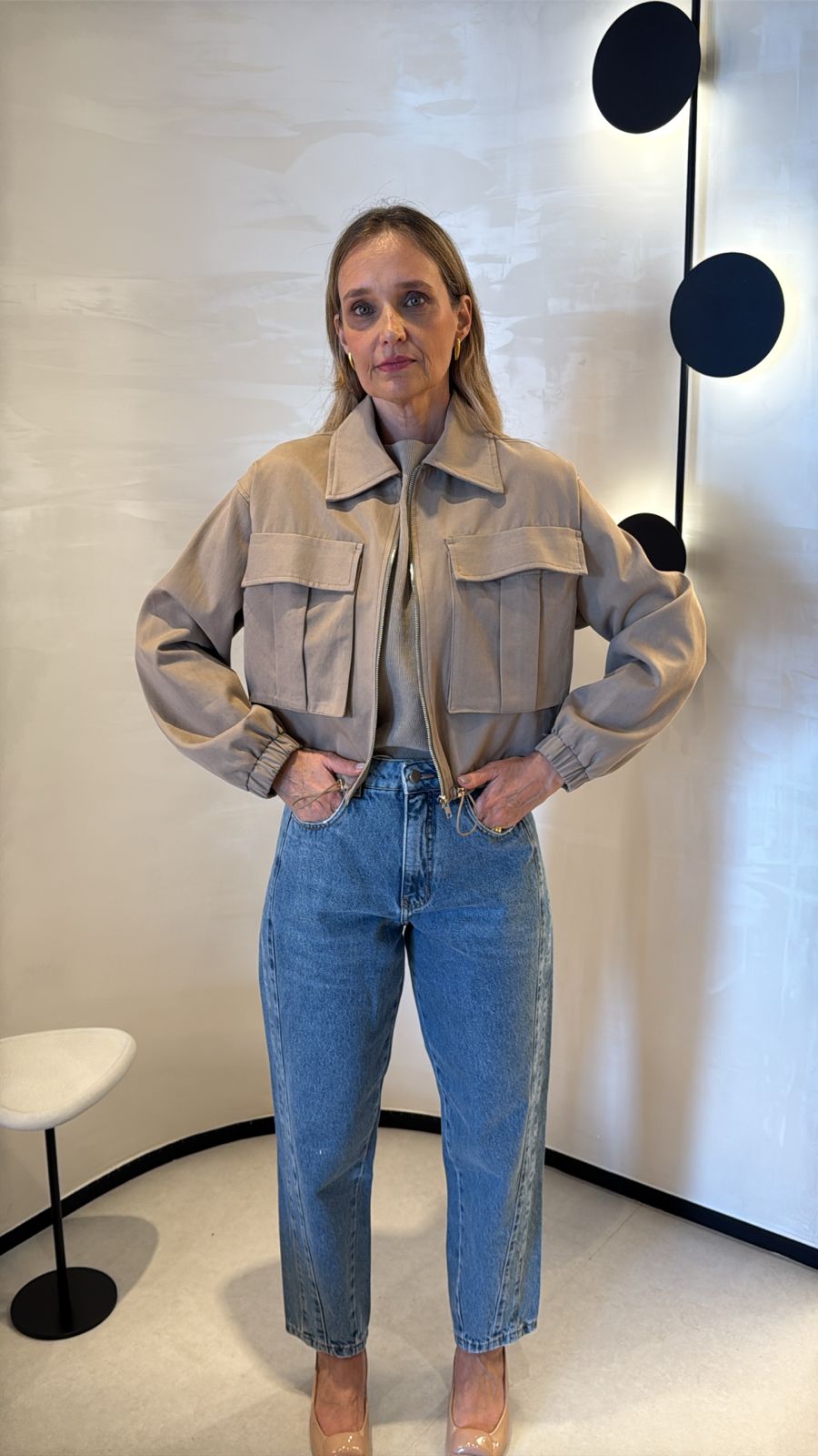 Jaqueta Sarja Manga Longa Com Bolsos